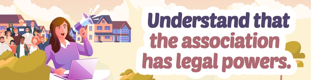 Understand that HOAs are legal entities and that they have the legal right to enforce rules and issue punishments for rule-breakers. Before settling in a particular neighborhood governed by an HOA, explore how rules are set and enforced, what penalties are in place for not following them, and the process for resolving disputes.